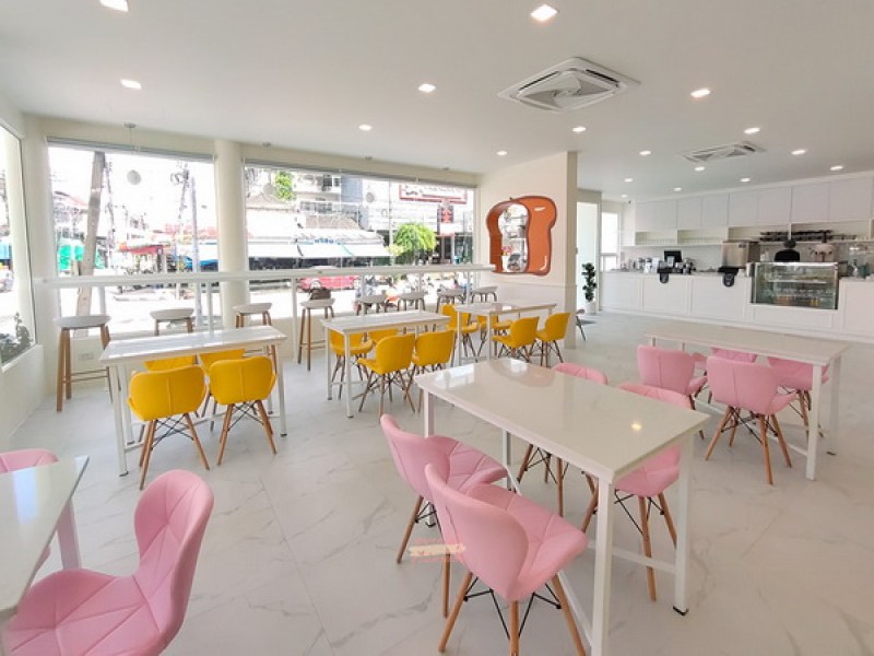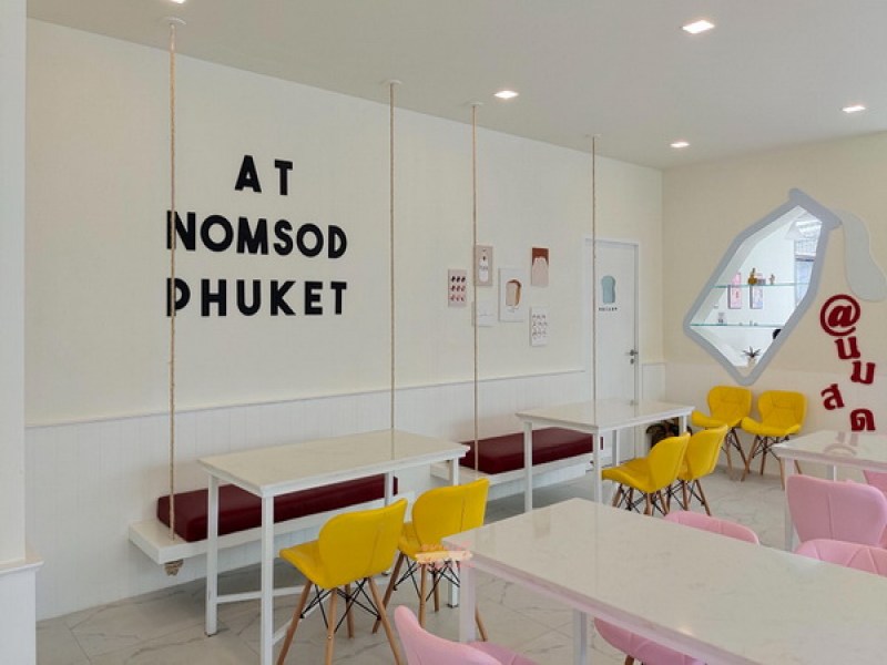 AT Nomsod Phuket is a pleasant, nice style coffee and milk shop. It offers milk desserts, waffles, Thai toast such as custard, sugar butter and buttermilk. They also serve chocolate brownies with ice cream. Drinks there is choice of hot and cold coffees, sodas, smoothies, cocos, teas, chocolate and milk drinks including Thai Pink Milk. AT Nomsod Phuket is situated in Phuket Town, a few metres from the Crystal Inn and adjacent to Kim's Massage and Spa 6. It is around 5 minutes walk from the Robinson Department Store.