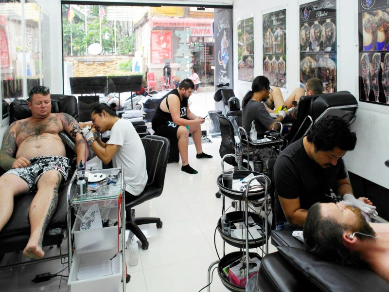 Aussine Tattoo Studio Phuket is a top tattoo shop in Patong known for magnificent designs, skilled artists, and warm service. They offer custom designs in a variety of styles and strictly adhere to international safety and hygiene standards.