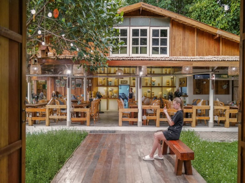 Baan Rai I Talay Cafe Phuket, a branch of the renowned Baan Rai I Arun from Ranong, is a charming cafe nestled on the old Kamala-Naka Road, also known as Kuan Yak or Giant Hill. This hidden gem is enveloped by lush tropical hills, offering stunning views over Kamala town and bay. The cafe serves a variety of Thai and European cuisine, accompanied by a selection of wines, coffees, and baked goods. You can also find handmade souvenirs, making it a perfect spot for both dining and shopping amidst nature.