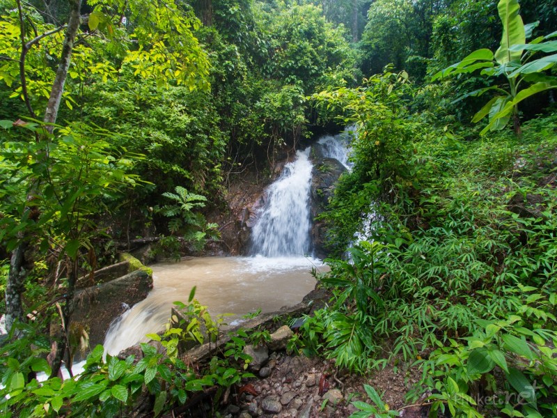 One of the tourist attractions in Kamala, Bang Wan Waterfall is hardly ever mentioned waterfall of Phuket. This small and hidden waterfall is formed in the upper area of forested Kamala mountain and flows to the lower area through Kamala village. There are 4 waterfall levels altogether but visitors are allowed to get up to the 2nd level only yet no steps available but a small walking track. In addition, for safety swimming is prohibited here. This waterfall is not very popular, thus you will not find any food stalls, shops or many people around there. Rest assured that you bring your own drinking water with you when getting there. You can find this waterfall at the end of 2 Kamala roads, Bang Hwan and Khok Yang Road that run through Kamala village. Close to the Royal Kamala Phuket Condominium, you will see 2 road branches flanking a concrete edge canal, then take the one on your right hand side and proceed to the end of the road. The waterfall is located around 50 metres from parking area.