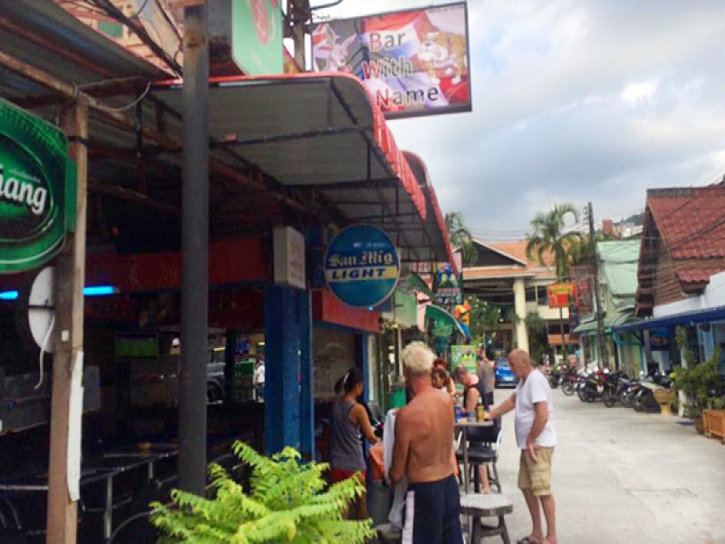 Bar With No Name Karon is situated in the centre of Karon. It is on the main Patak Road, just over a 5 minute walk from Karon Trafiic Circle and Karon Beach. This family friendly, inexpensive bar has a free pool table, 4 large TV screens showing the latest sporting events and also serves good pub grub and bar snacks. Decor is simple, with comfortable chairs and stools. Atmosphere is warm and friendly. Popular with the expat community.