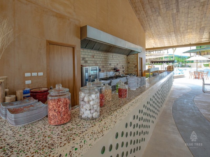 Bay Grill at Blue Tree offers a variety of sizzling BBQ options including steak, chicken, pork, beef, and lamb in both outdoor and covered dining areas. Customers can enjoy watching and smelling their food being grilled in the open plan kitchen at this location on Srisoonthorn Rd in Cherngtalay.