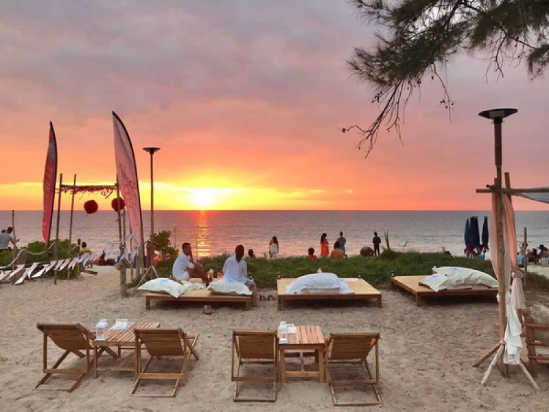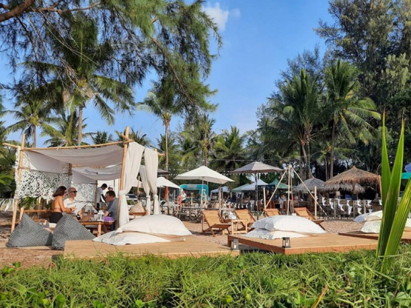 Set on Layan beach, Beach & Bubbles is an ideal spot for sunset nibbles and drinks. It is suitable for couples, groups of family or friends and couples. Drinks offered include Wine, Ice-Cold Beers, Cocktails, Champagne and Coffee. Snacks offered include Cheese Boards and Oysters. There are different styles of seating ranging from bean bags to bamboo sofas to sit on. Beach & Bubbles faces Layan beach, on Soi Tambon Choeng Tale.