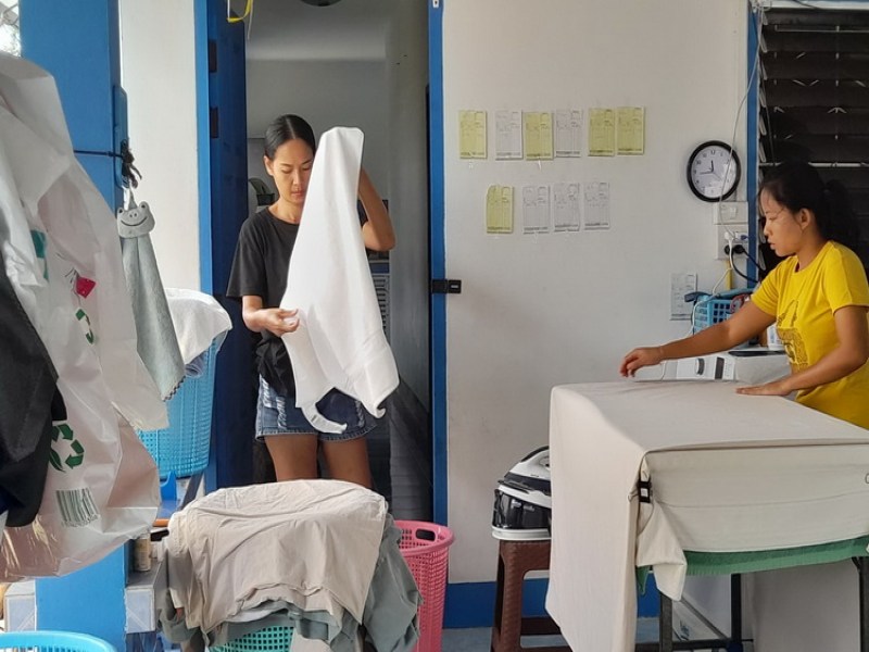 Bee's Laundry Service, run by an experienced owner and team, offers expert laundry services. We clean and polish men's and women's leather shoes, including joggers, leisure shoes, sandals, and leather dress shoes. We also provide home delivery for bedding, duvets, and clothes, ensuring all items are returned clean, fresh, and neatly packed. Our general services include washing, drying, and ironing. You can easily find us on the small street next to Nai Harn Dental Clinic in Saiyuan.