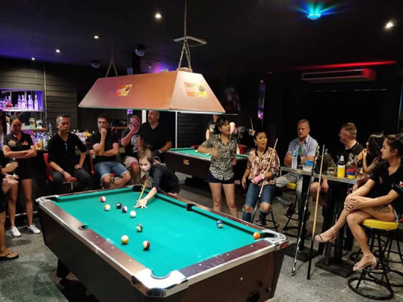 The Black Pearl Club, Rawai is named after the number 8 black pool ball. The bar is a popular hangout for pool lovers, and often hosts pool tournaments and competitions. As well as a number of pool tables, it also has a billiard table. The space is simple in layout with bar area, and a sitting area with high bar tables and stools. The food menu offers a variety of popular Thai dishes. The Black Pearl Club is situated in Soi Werachod, off the main Wiset Road in Rawai. It is only a few minutes drive from the Laguna Rawai nightlife area.