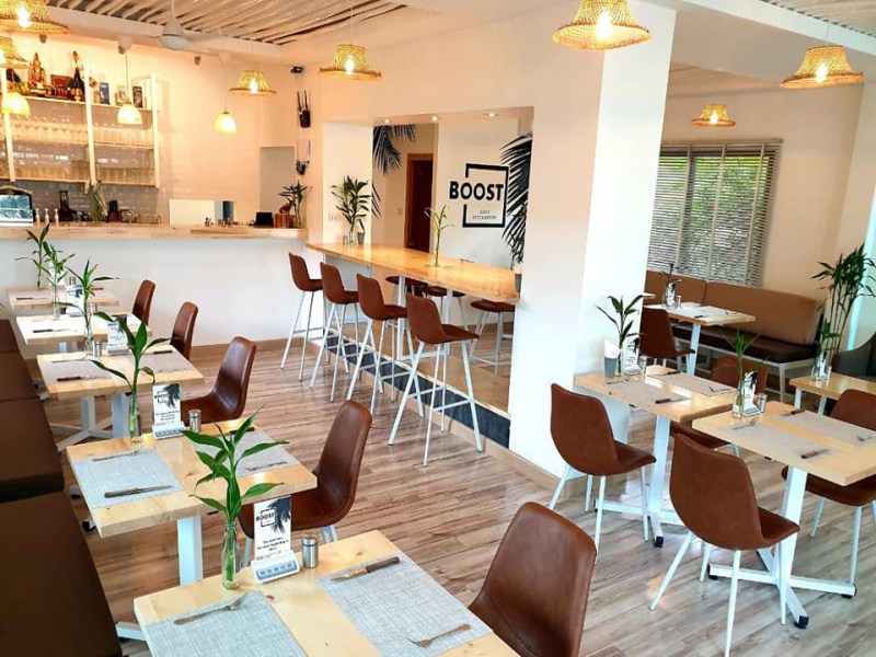Boost Cafe Phuket has a wide ranging all-day breakfast, brunch and healthy dish menu. Items include Poached Egg with Bacon, Greek Quinoa & Falafel Salad, Boost Super Food Salad, Tuna Tacos, Various Tartines, plus their signature Boost Wraps and Bowls. Beverage options range from espressos and lattes to fresh juices and smoothies. There’s also a bakery offering tempting cakes, cookies and desserts, such as their Vegan Banoffee. This tropical-inspired cafe is located along Saiyuan Rd, Highway 4030 in the outskirts of Rawai, close to Nai Harn. It is just a few-minute drive from a Lotus's Express, and a few metres from the Alphabeto Resort.