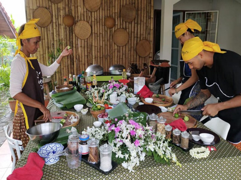B’s Thai Cooking Classes, offers a variety of class options that are suitable for single persons, couples or small group. Generally classes are not larger than 10 persons. For most classes, you will be picked up from your hotel and taken to a local market, choose your ingredients including vegetables, fruits, herbs and meats, then be driven to Chef Bee's lovely house. Once there, Chef Bee will explain about Thai food, how to prepare and cook the selected dishes with you. She is passionate about cooking and also likes to explaining about local life in Phuket and Thailand. B's Thai Cooking Classes are held in a house in Kathu, about 10 minutes drive from Central Festival Phuket.