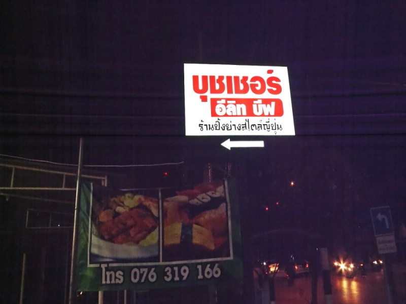 This Butcher Elite Beef, a Japanese style BBQ Buffet with non-smoke indoor grill can be easily found on the left hand side when heading to Patong. It is located right at the corner of the main road before turning left to Prince Of Songkha University. Enjoy good quality and fresh product and delicious homemade sauce in an informal atmosphere.