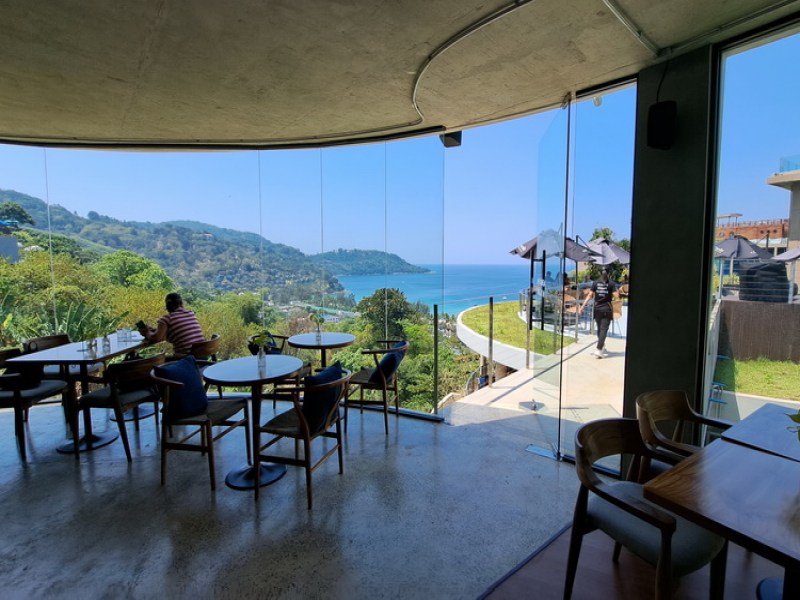 Cannelle Bakery & Co Kata offers stunning views of Kata Noi Bay and the Andaman Sea while serving renowned coffees, healthy beverages, freshly baked pastries, sandwiches, smoothies, desserts, and more in both indoor and outdoor seating areas.
