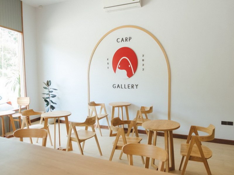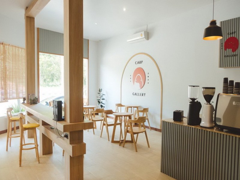 The Carp Gallery Cafe offers a selection of Japanese-inspired drinks and pastries, including signature items like Carp Thai Tea and Brookies. Located near King Power Mall, customers can also visit the Fish Shop to purchase ornamental fishes.