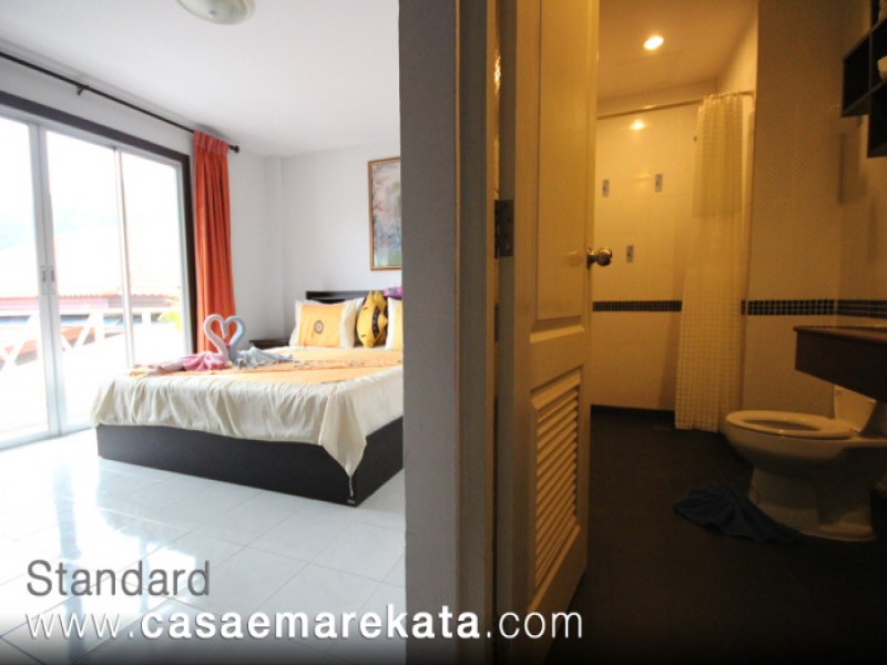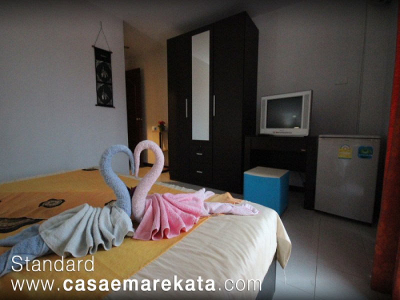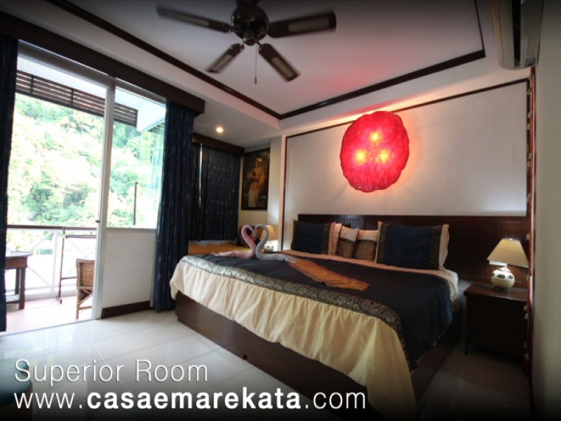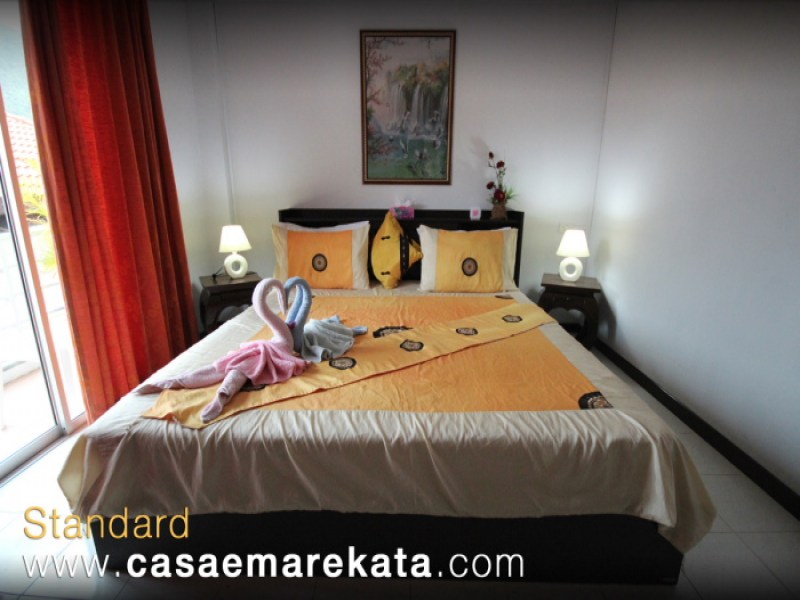 With Italian staff and just 10 minutes walk from sandy, beautiful Kata Beach, the modern residence building Casa e Mare Hotel has pleasingly furnished rooms. Standard Rooms are located on the upper floors and are accessed by stairs, while Superior Rooms can be accessd by elevator lift, and have a large double bed that can be separated into 2 single beds if required. All rooms have a balcony and free WiFi. The restaurant and cafe is located at the main entrance of the Casa e Mare Hotel and as the owners are Italian, offers a good range of good tasting Italian meat, pasta and pizza dishes, as well as coffee and cakes. They also have a tour desk that can arange day trips and motorcycle hire, and there is a Family Mart Shop almost next door.