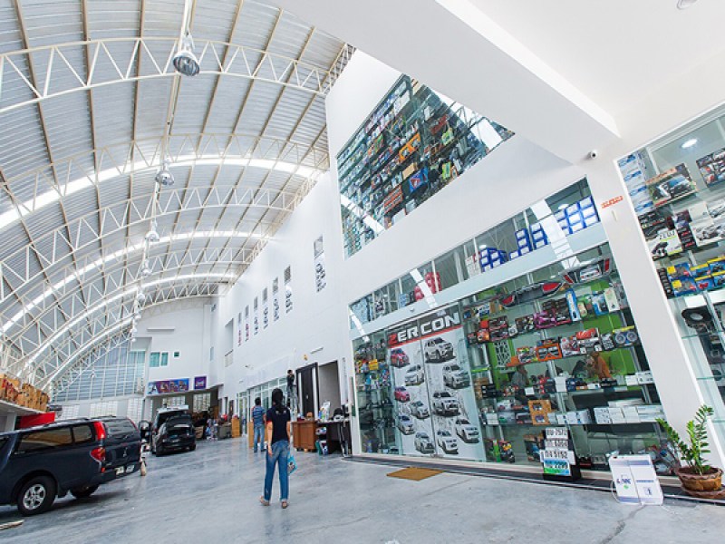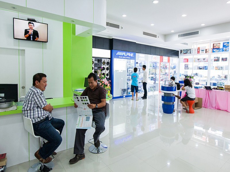 Chai Autosound Phuket is conveniently located on By Pass road and around 2 km before Lotus's Shopping Mall Samkong. This one stop car accessory shop features various brand car stereos, decoration items, window films, glass coating and 4x4 accessories. All products come processional installation service and there are separate space for some special installation like film and coating. While waiting for their car having installation or services, customers can spend relaxing time in customers waiting area which is fitted with large sofas, coffee table and large flat screen TV.