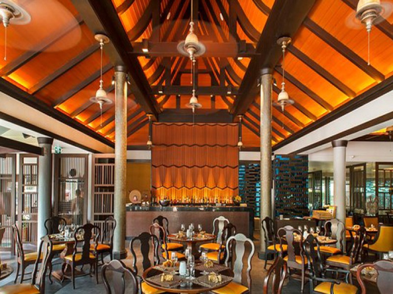 Charm Thai Restaurant at Holiday Inn Resort Phuket offers stylish dining in an open Thai sala by the pool, serving delicious Thai dishes prepared by experienced chefs, including fresh seafood and vegetarian options like Vegetarian Phad Thai.