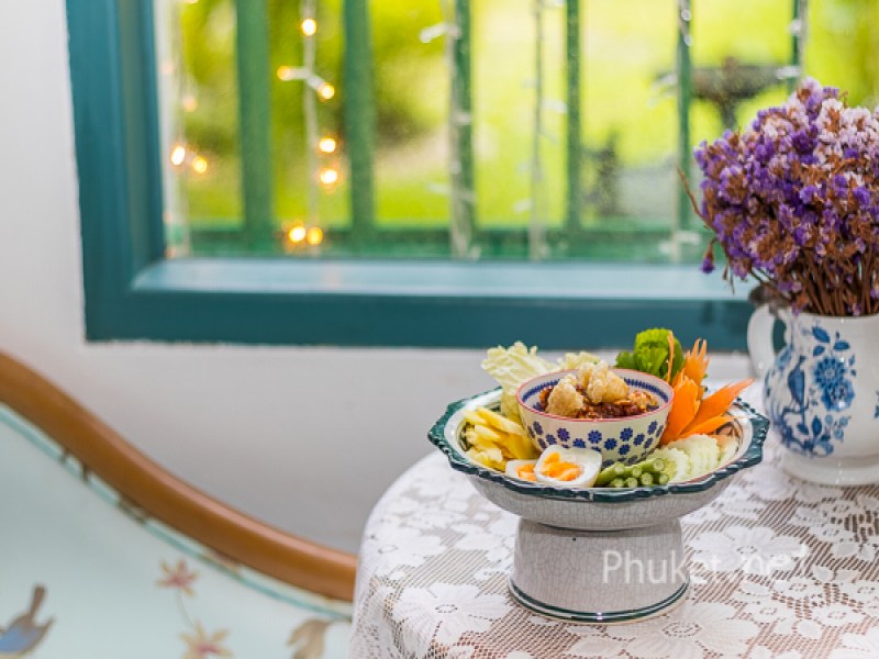 Chomchan is a classy sister restaurant of another well known restaurant among the locals, One Chun, serving a sensational Phuket & Thai cuisine you cannot find anywhere else. The owner is a niece of Auntie Kulab of the legendary Raya Restaurant. It means there are many wonderful dishes that have been handed down. However, our top three dished ranked from great to awesome are Fried Grilled Pork Belly with Salt served with Chili Sauce, Thai paste with Crispy Pork Cracking served with Boiled Egg and Fresh Vegetables, and Phuket Style Papaya Salad with Shrimp Paste. For sweet tooth person, we recommend an “O-eo”, Phuket’s favourite shaved ice dessert made of banana jelly, red bean, watermelon and grenadine syrup. It’s to die for. The restaurant set in the Thai colonial style house with traditional furnishing and decoration, making the dining area feel like home, welcome and comfortable. The well-designed garden outside is really refreshing and delightful. Such a pretty entrance! Chomchan is located on Yaowarat Road, near Vachira Hospital. It is about 10 minutes drive from the Old Phuket Town.