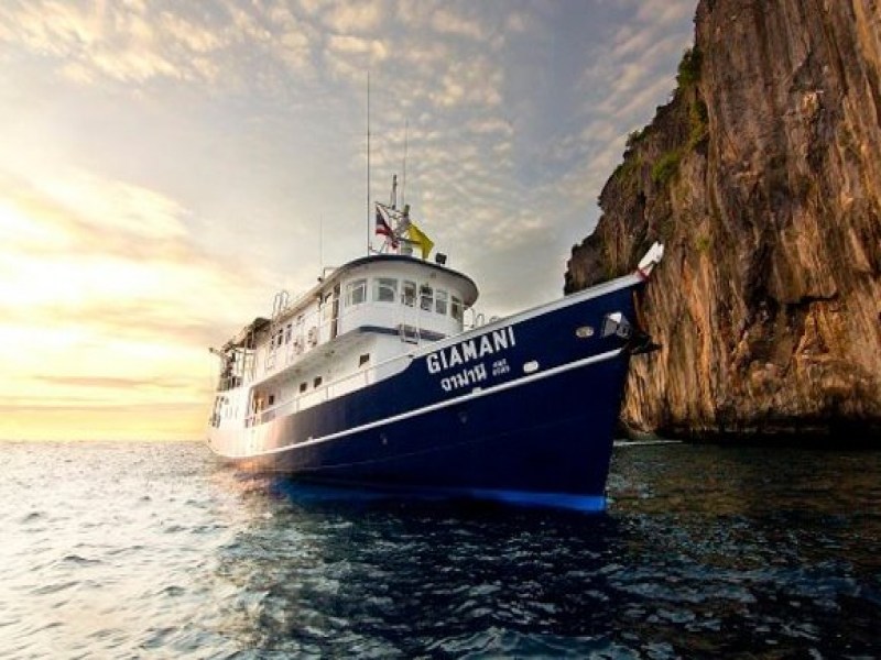 Colona Liveaboards specialise in liveaboards to the Similan Islands, Thailand and to the Mergui Archipelago in Burma, some of the most prestigious diving destinations in South East Asia. MV Giamani - Premier Thailand Liveaboard MV Giamani to be able to offer a wider range of liveaboard trips to our diving guests. On board MV Giamani we have 2 Standard cabins and four Deluxe cabins to accommodate 12 guest only on each trip to ensure that there is always plenty of space for all guests onboard (16 people for charters when utilising the triple share cabins). The two air conditioned standard cabins are situated on the upper deck behind the wheel house; these spacious cabins each have two single berths and share 1 bathroom. On the main deck we have four Deluxe cabins - 2 Twin Deluxe plus 2 cabins with double bed. Each cabin has a 3rd berths, which is very popular for divers travelling with kids. Each deluxe cabin has it own air conditioning unit, en suite bathroom and the cabin door opens to spectacular sea views. Enjoy the air conditioned saloon for watching a movie, playing back your digital images from that day’s dives, or browse through our extensive library of marine books. Our popular cushion relax area gives you plenty of space to read a book, enjoy the views and chat about the thrilling dives of that day. The dive deck is spacious with camera tables and rinse tanks making this an ideal boat for serious photographers. On the main deck all meals are served buffet style, the food is plentiful and diverse, Thai cuisine and International dishes are served, special diets can be catered for if we know in advance. MV Giamani has a full complement of safety equipment making her a spacious, safe and diver friendly boat. We look forward to diving with you onboard MV Giamani in Thailand, Burma and Indonesia.