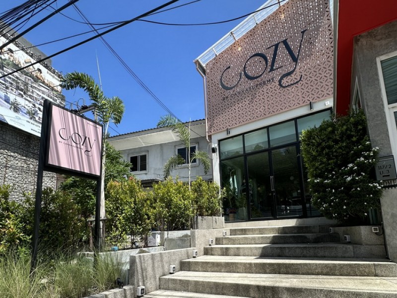 Cozy by Canna Supreme is a delightful all-day brunch spot that doubles as a dispensary, restaurant, and coffee shop, offering a truly relaxing ambiance. Conveniently located just before Surin Beach, the restaurant has a spacious interior with multiple seating areas both inside, where air conditioning provides comfort, and outside, including options on both the ground floor and the top floor. The upper level is vibrantly decorated in a tropical style with colorful seating. The menu features hearty Western-style cuisine with generous portions, including pastas, sandwiches, steaks, salads, and burgers. For dessert lovers, there's a tempting array of options such as cheesecake and brownies, beautifully topped with fresh fruit for a juicy presentation. You can find this inviting café on the left side as you approach Surin Beach.