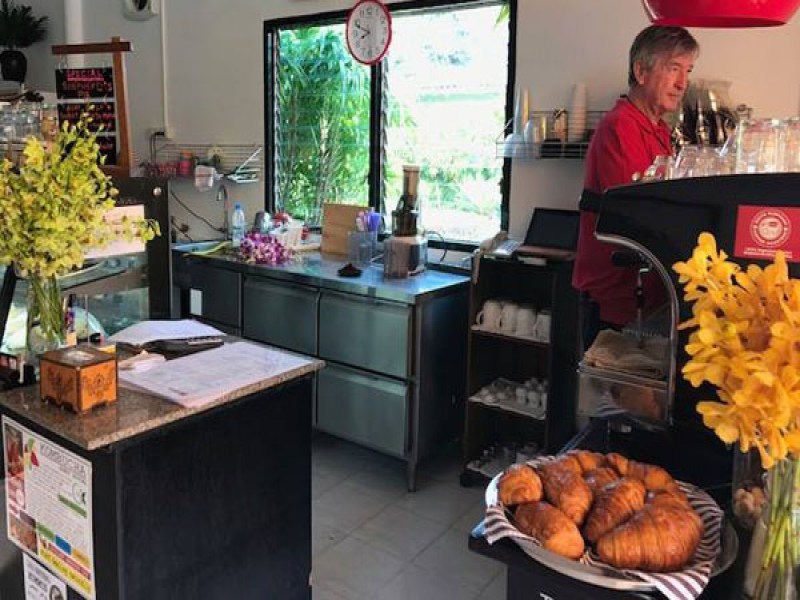 The Delish Cafe is located in Soi Sai Yuan, Rawai. This eatery and coffee shop serves an all day breakfast and lunch including toasties, hamburgers, salads and homemade cakes. The beverage menu includes hot tea and coffee, soft drinks, smoothies, wine and beer. Indoor cooled air-conditioned area, an outdoor seating option and free WiFi are available.