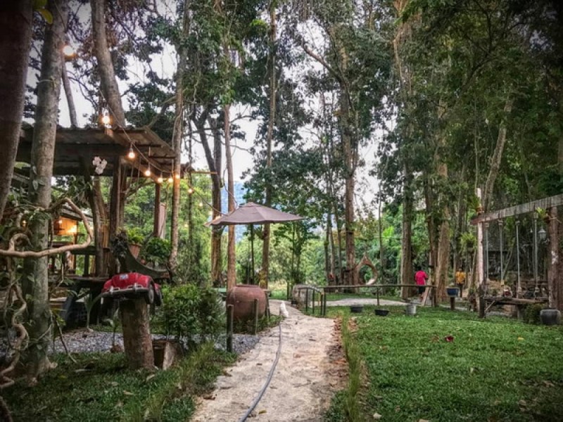 Duu Naa Kann Sokhrok Cafe offers a variety of delicious Thai dishes and beverages in a picturesque garden setting, with multiple seating options and photo opportunities. Located near Vachira Phuket Hospital, it is the perfect spot to relax and enjoy the natural surroundings with friends.