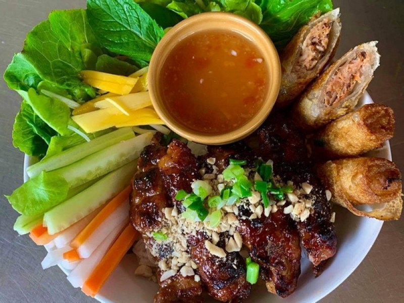 The Filling Station Phuket offers a diverse menu of authentic Vietnamese and healthy dishes, including jerk chicken, bun cha Hanoi, egg rolls, sizzling BBQ skewers, burgers, and salmon bowls. Located in Chalong on the popular fitness road of Soi-Ta-iad, it provides a comfortable air-conditioned dining area near a supermarket and a Muay Thai gym.