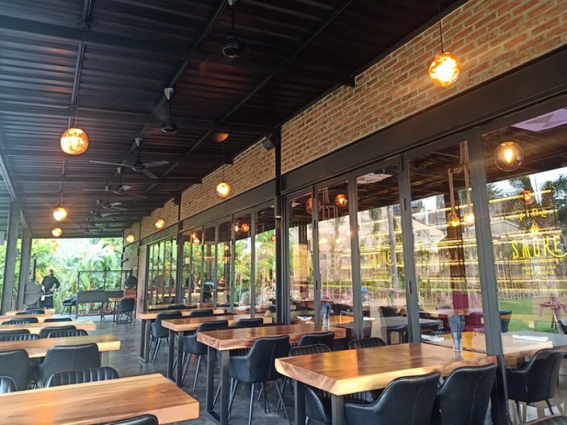 Fire & Smoke, located in Cherng Talay, Phuket, is a sophisticated and alluring steak restaurant boasting both an open kitchen and an outdoor grill and smoker. Diners are able to relish in the culinary expertise of chefs as they prepare delectable courses. The appetizer list offers a selection of various seafood dishes, including homemade gravlax, calamari, gambas, mussels and toast skagen, in addition to several salad options such as butterhead salad, caesar salad, and more. A range of pasta dishes including penne pomodoro, spaghetti bolognese, and spaghetti seafood are also available. The main course menu presents a broad array of options, among which the steaks and tacos are highly recommended. To top it off, guests can indulge in homemade gelato and a refreshing drink for dessert. Fire & Smoke is conveniently located in the heart of Cherng Talay town, adjacent to Srisoonthorn Road, and features ample parking facilities.