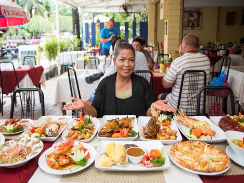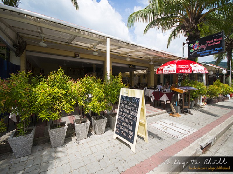 The mainly Thai cuisine Ging Restaurant is easily accessible, being within a short stroll from the front gate of The Old Phuket Hotel. It is part of Aroona Plaza, which is a few minutes walk from Karon Beach. As well as a diverse selection of Thai food they also serve European food such as pizza, cheeseburgers, lamb chops and salads. Ging is covered part open air and is cooled by fans.
