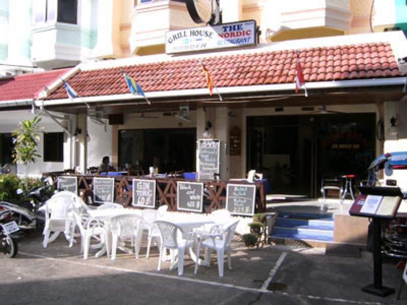The Grillhouse Norden is one of the small restaurants, located around the front of the Centrara Karon Resort. It is located inside the ground floor area of the cosy Seabreeze Inn Hotel. It is on a small road, just off the main Patak Road, within a short, 250 metre inland direction walk from the Karon Traffic Circle. This ceiling fan cooled establishment features a variety of fast food items including an unusual meatball burger, and Thai and Scandinavian dishes. People can eat on the outdoor terrace or inside this simple decor, friendly staff restaurant.