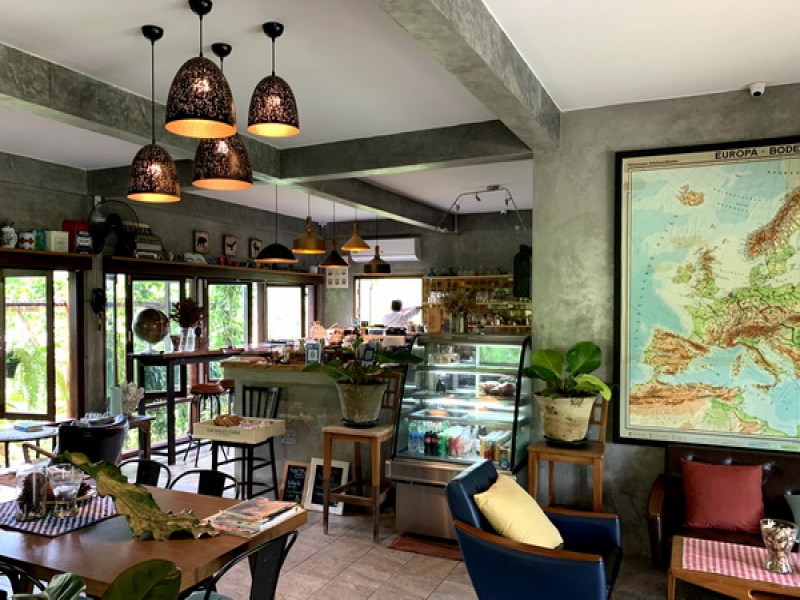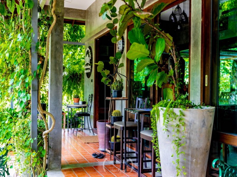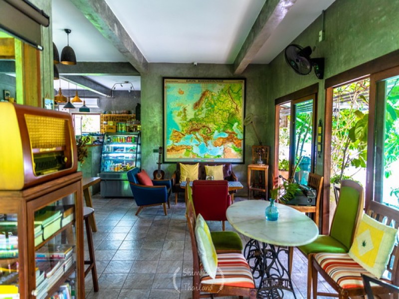 Hideaway Cafe Saku is a tucked away coffee shop that offers affordable priced, Cakes, Sandwiches, Light Snack, Thai Food, Fruit Smoothies and Shakes and a choice of Teas and Coffees. Here you can relax and take in the green mountain and vegetation views The inside has interesting, minimalist, features and decor. Outdoors there is a cover balcony, with low-level tables and cushions to sit on. Hideaway Cafe is located in the district of Thalang, in the sub-district of Saku, under 10 minutes drive from Naithon beach.