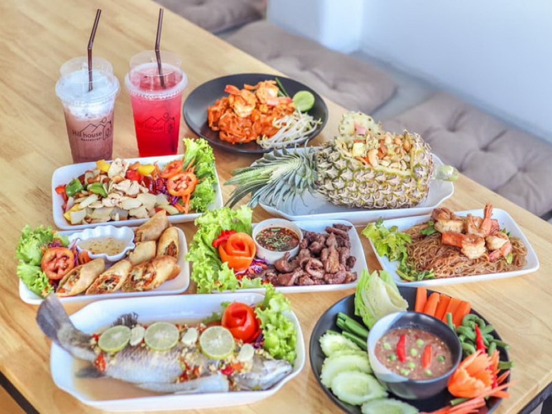 Hill House Halal Restaurant offers a unique dining experience with stunning views of Yon Bay in Phuket, serving a fusion of Thai and Western dishes, fresh seafood, refreshing drinks, and delicious pancakes. Guests can conveniently park right in front of the venue.