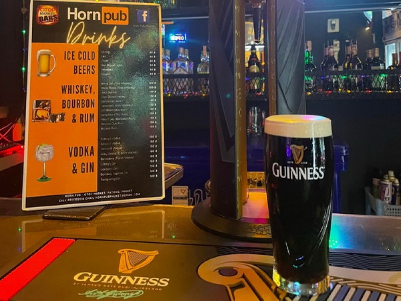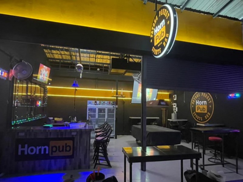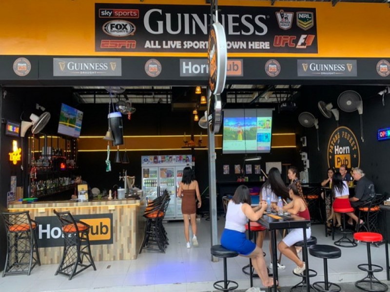The Horn Pub is a small, friendly beer and sports bar. It has a live TV screen and also has a pool table. It is situated in Patong in the OTOP Shopping and Food Market area, which is opposite to the Hard Rock Cafe, just off Thanon Ratuthit Songroipi Rd.