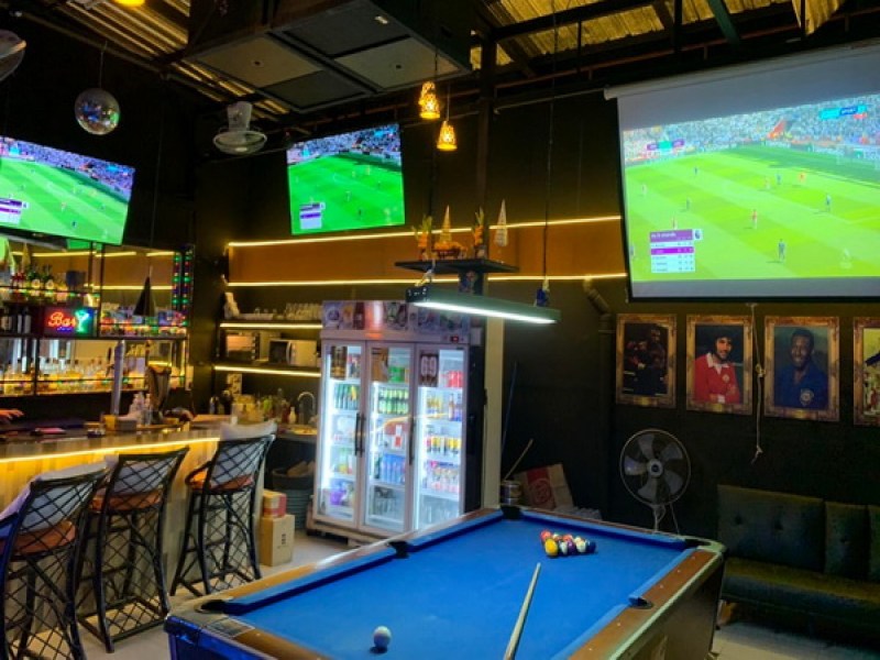 The Horn Pub is a cozy beer and sports bar in Patong with a live TV screen and pool table, conveniently located near the OTOP Shopping and Food Market area.