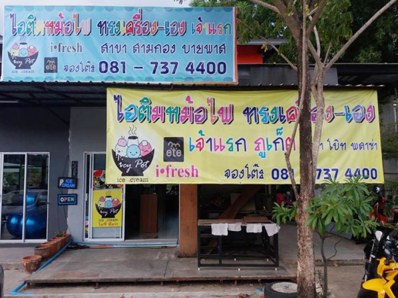 "Icypot Ice Cream is a real paradise of ice cream lovers who seek bigger ice cream scoops being served in a bigger pot. Customers coming here can enjoy more than 20 flavours of ice cream from the renowned brand ete. their custom toppings. The highlight is that this ice cream parlour allows its customers to have their own custom topping. Other items such as Chocolate Lava, honey toast and pancake are also available. This Ice cream shop is located at Boat Plaza Samkong, by the freshwater lake. There are both indoor and outdoor seats. Outdoor seats are more popular because it allows for relaxing lake views. ".