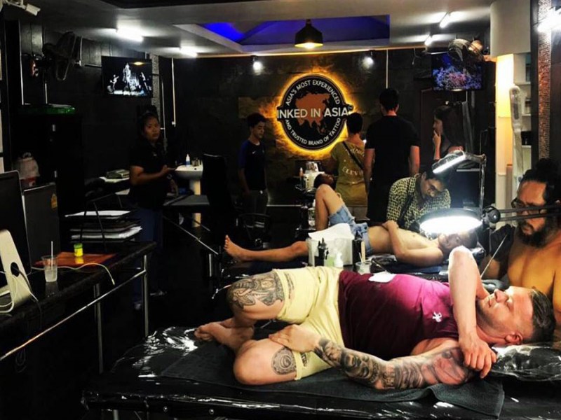 Inked In Asia is located in Patong, Phuket. The studio offers tattoo service by proficient and experienced tattoo artists in a clean and sterile tattooing environment to all guests. All artists wash hands with rubbing alcohol or liquid soap. They wear disposable gloves. Needles are cautiously dumped in a bin meant only for sharp objects. Wash basin is strategically positioned near the treatment area along with paper towels.