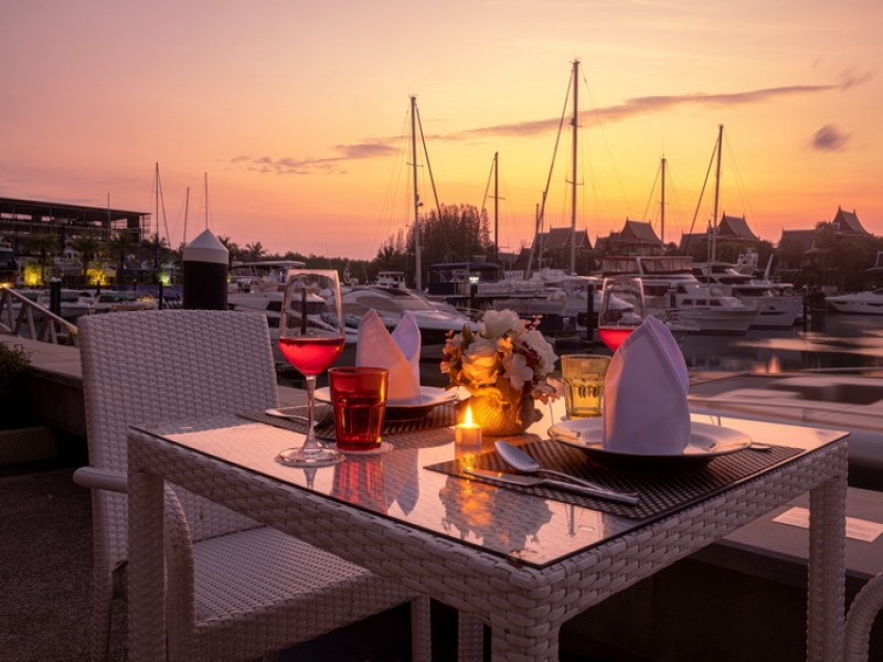 This yacht berth view Isola Restaurant is a stylish Italian restaurant in the Royal Phuket Marina near Phuket Town. The restaurant serves authentic Italian food made by a genuine Italian chef using the finest, fresh and delicately selected ingredients from local suppliers. Homemade pasta, risotto and especially thin pizzas are all highly recommended as signature items that you must try. In addition to Italian cuisine, there are cocktails and also some seafood, meat, Thai food and desserts available. You can either dine indoors in an air-conditioned zone or eat alfresco on the boardwalk with relaxing and unique views over various luxury yachts.