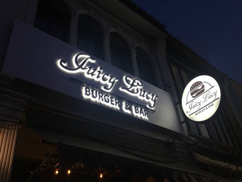 Juicy Lucy is a tasty, casual restaurant known for its American style Smashburgers and signature Juicy Lucy Burgers, where the cheese is inside the meat patty. This burger joint focuses on serving quality products, such as French Charolais Beef, Brioche Buns, Potato Wedges and Chicken, Lamb, Fish Burger and a Falafel Vegetarian Burger. They have free WiFi, live music every Friday and Saturday, a sports TV, and a pool table, ideal for a fun game and socializing after a delicious, filling burger meal. Juicy Lucy Burger & Bar is located along Yaowarat Rd, in Old Phuket Town. It is just a few metres from Suriyadej Traffic Circle, adjacent to Phuketique Coffee Shop.