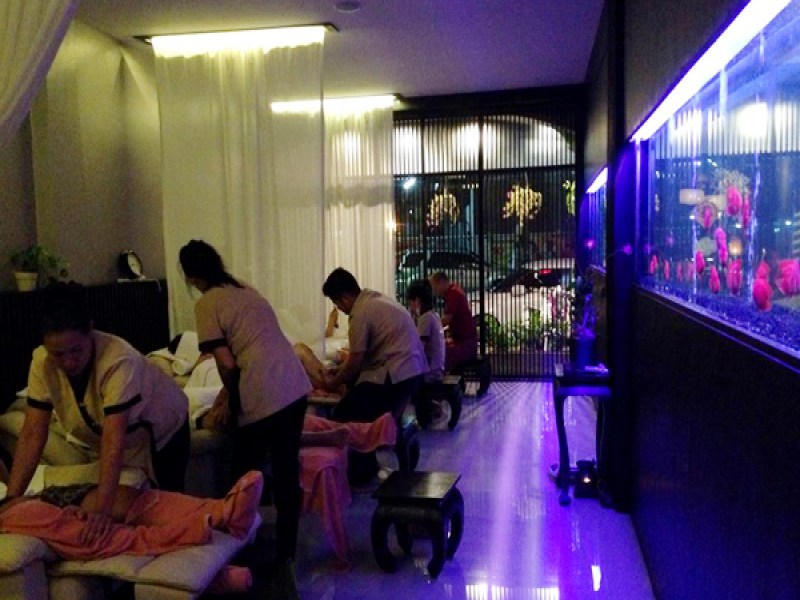 Kim's Massage & Spa 5 Old Town Phuket has a welcoming reception area that has been fitted with comfortable chairs, dark wood paneling walls and large, relaxing to look at tropical fish tanks. It is situated on the end of Old Phuket Town on Phangnga Road, adjacent to the large CAT Telecom building. It provides a whole range of massage and beauty services, performed by well trained, professional staff. Faculties include free wifi, shower rooms and private oil and massage rooms.