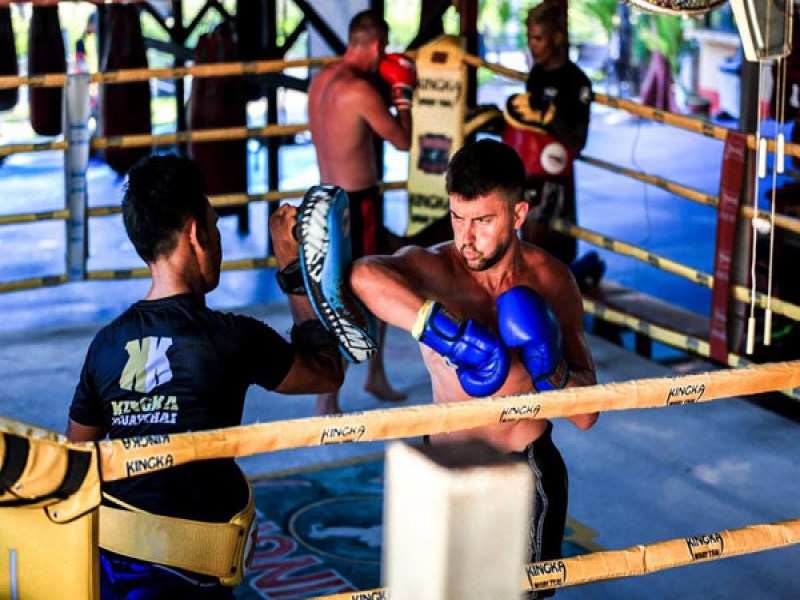 Nestled among coconut trees in Rawai in the south of Phuket, Kingka Muay Thai offers Muay Thai training for all level by experienced trainers with comfortable accommodation. There are 2 training sessions, 6 days a week: morning starting at 7: 30 am and afternoon from 4: 00 pm. Each session lasts approximately 2 hours. The camp also offers onsite accommodation from dormitory style rooms to private rooms with AC. The bungalows are set amongst beautiful gardens and come with free Wi-Fi. Meal plans are available for those who are looking for losing weight or build muscle. A gym for cardio and strength training is open daily from 7: 00 am - 7: 00 pm.