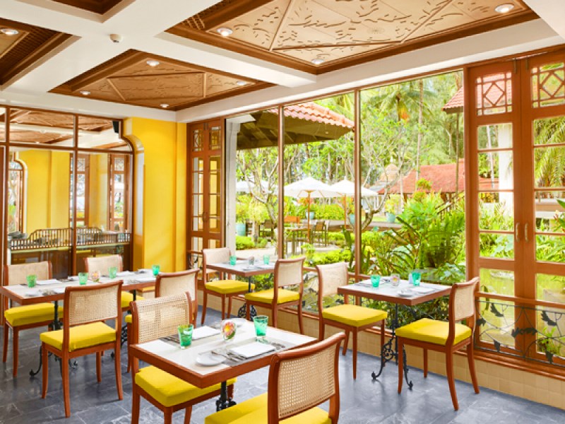 Laguna Cafe Restaurant offers a beautiful and casual dining experience at the luxury Dusit Thani Laguna Phuket Hotel, serving classic dishes from around the world in a Thai-style setting with indoor and outdoor seating options.