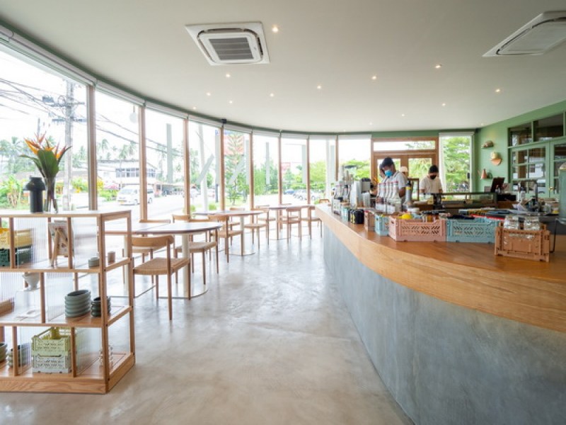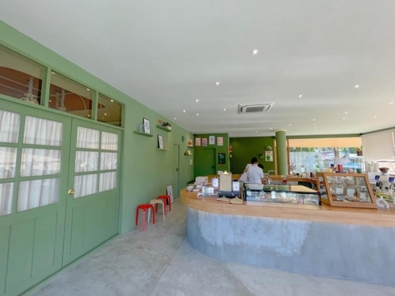 A corner of the Fisherman Way Business building in Chalong, by the main road to Rawai Beach, this Leikki Neighbourhood Cafe is decorated in a lovely pastel green and kids club theme. The cafe is bright with plenty of natural light entering through large glass walls on the front side. Some available items to enjoy while sitting in this relaxing atmosphere cafe include a choice of hot and cold drinks, coffee, tea, bakeries and some desserts.