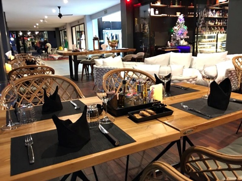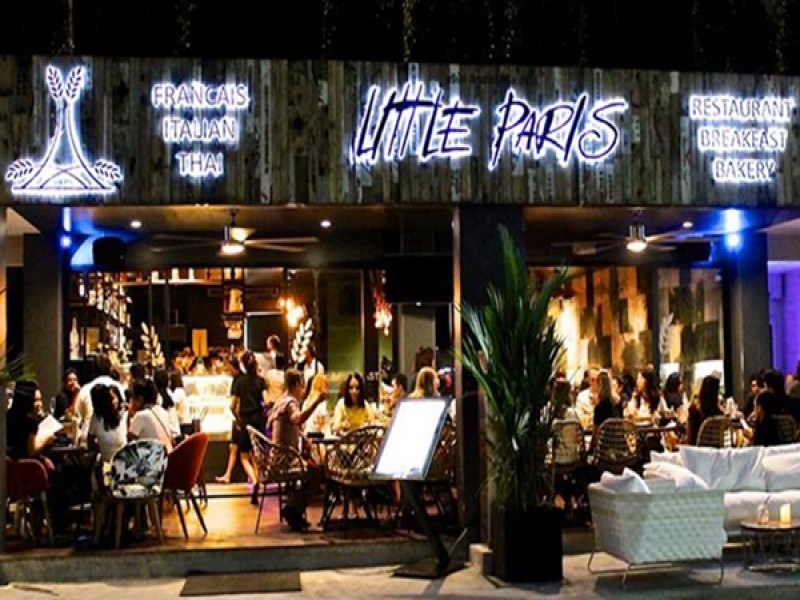 The Little Paris Restaurant Phuket is open for breakfast, lunch and dinner. It offers French items such as Croissants, French Cheeses, Fish Soup, Foie Gras, Lyon Salad and Gratin Dauphinois, but also a good selection of other cuisines. This includes Thai, Hamburgers, Pasta Dishes including a Vegetarian Lasagna made with Goats Cheese and Zucchini, Pizzas and Desserts that include Italian Ice Creams, Creme Brulee and Tarte Tatin. For early birds they offer various cooked and healthy breakfast options, tea, coffee and fresh fruit juices. Little Paris Phuket has a warm and friendly atmosphere and has two dining areas. a covered open-air terrace and an indoor section that had wooden flooring and comfortable cloth covered easy style design chairs. Little Paris is located in Cherngtalay, near to Laguna. It is part of the Boat Avenue Shopping and Eating Centre, and is adjacent to the large Villa Mart.