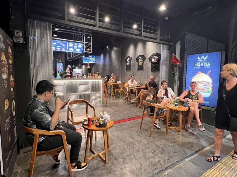 Madcow Gourmet Burger, serving top-notch burgers since 2015, is a cosy spot on Rassada Road in Phuket Old Town zone, conveniently located between ttb Bank and KTC Bank Phuket Head Offices. Known for its commitment to quality, the restaurant crafts delicious burgers using premium ingredients. Menu highlights include the Madcow Classic Burger, Spicy Jalapeño Burger, Cheesy Mushroom Burger, and the Veggie Delight for plant-based diners, all served with sides like crispy fries or tangy coleslaw. Whether you're craving bold flavours or a comforting meal, Madcow is a must-visit for burger lovers in the area.