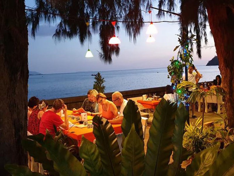 Established over 20 years ago, Mae Khlong Seafood Restaurant is a popular fixture of Rawai Beach. It overlooks the sea and is set amongst shady trees. The menu lists a host of fish and shellfish dishes as well as popular Thai non seafood dishes. It is unfussy in style, and prides itself on it's good friendly service and authentic food. Arrive here around 6pm and you can enjoy your meal while watching the sunset. Mae Khlong Seafood Restaurant is situated on Wiset Road, locally known as Rawai Beach Road. It is a few moments drive from Nikitas Beach Restaurant, if driving south towards Phromthep Cape.