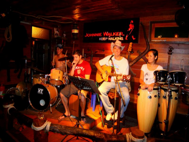 Mango Saloon in Phuket offers a unique wild west saloon experience with a cozy atmosphere, serving Thai and Western dishes, and featuring entertainment such as big screen TV, pool table, and live music.