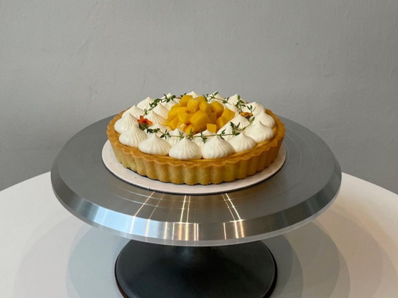 Mata Second Floor in Old Phuket Town offers a variety of homemade bakery products like Mango Passion Fruit Tart and Basque burnt Cheesecake, along with a selection of beverages including coffees, teas, smoothies, cocoa, and sour sodas.