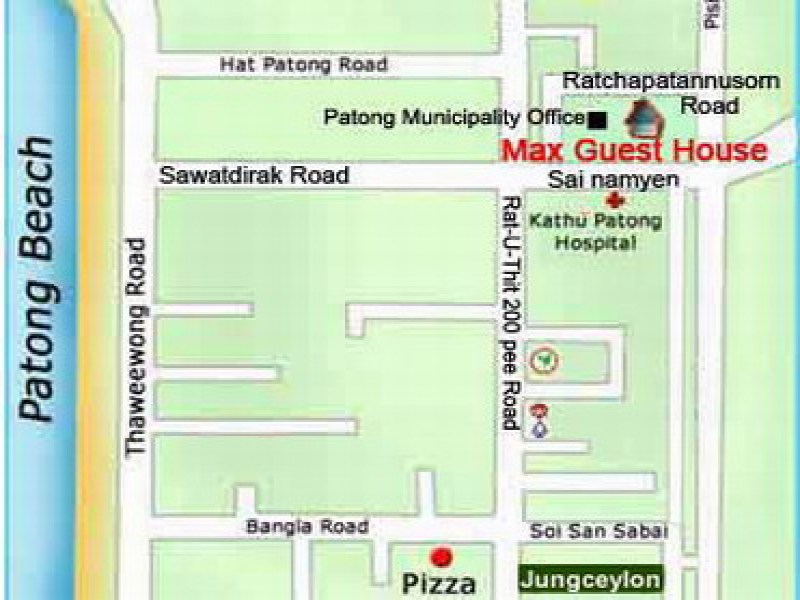 Max GuestHouse Patong Beach Phuket nicely furnished guesthouse hotel, Restaurant and bar, central location Patong Beach location, 28 large rooms, comfortable reception area, quiet area Patong Beach, near shopping, beach.