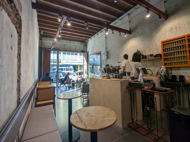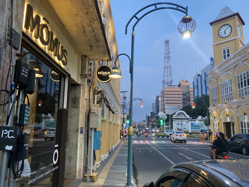 MŌMUS Coffee offers high-quality coffee prepared by experienced baristas in a modern, minimalist setting with various seating options, catering to quick breaks, social gatherings, and remote work. Located in Old Phuket Town near the Phuket Museum.