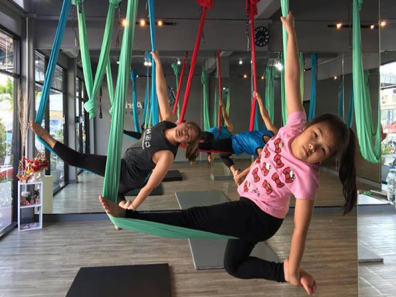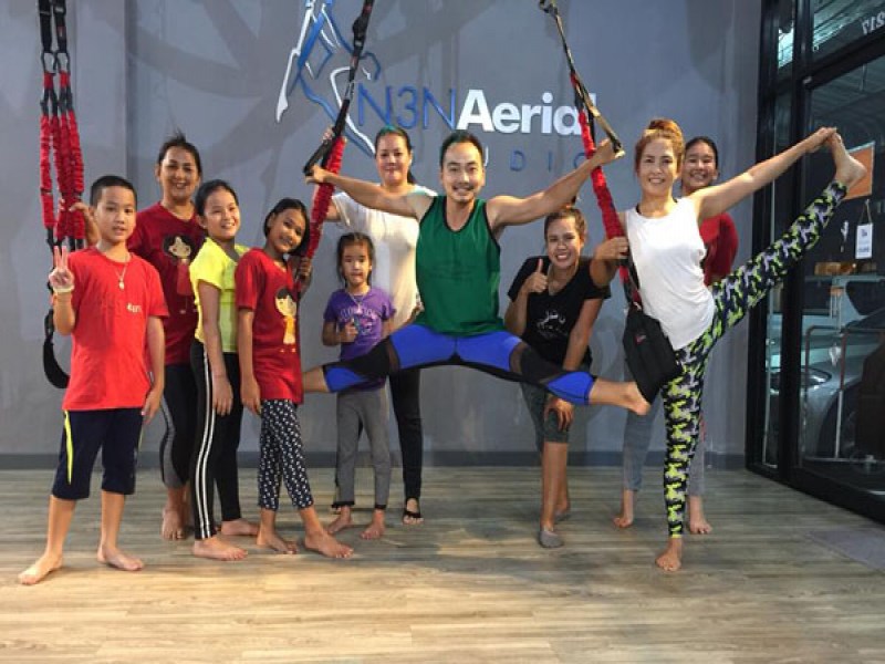 N3N Aerial Studio Phuket is an anti-gravity yoga studio featuring aerial hammock, aerial hoop, bungee dance and Zumba. This aerial yoga studio provides a wide variety of group classes with professional instruction, both in the air on the ground, for all levels of skill in a friendly atmosphere. Whether you are looking to new way to workout, fun physical activity to keep yourself in shape, learn a new skill, their instructors will help you find an activity you enjoy and keep you motivated. The studio is located near Queen Sirikit's 72nd Anniversary Chalerm Prakiat Park and Tourism Authority of Thailand Phuket Office on Thalang Roaad, Phuket Town.