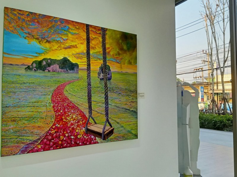 Since opening in 2013, Napas Art Gallery has featured original artworks by local talents Soon Papan and Juffy Joob. Both artists are passionate about their craft and focus on oil painting on canvas. Their collections include landscapes, scenes of nature, and distinctive animal portraits, such as cats dressed in human attire like wedding outfits. They also frequently engage in various events, offering insights and expertise in drawing techniques.