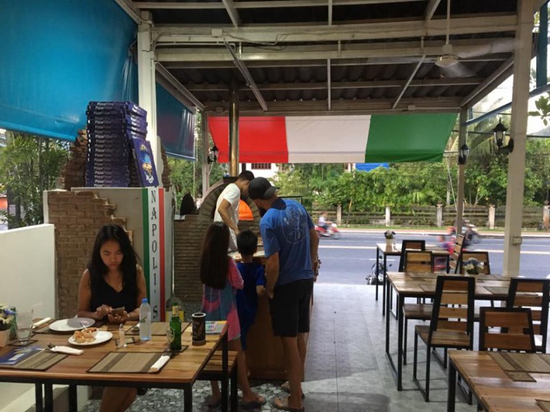The family-operated Napoli’s Pizzeria, Kathu, serves tasty traditional wood-fired pizzas, calzones, lasagna, gnocchi and pasta dishes including seafood spaghetti. The wood-fired pizzas served all day long. After your main course, try their delicious tasting Panna Cotta to finish a meal. Napoli’s Pizzeria, is clean and simple in design. The indoor area is air conditioned and the terrace is fan cooled. The restaurant is situated on Vichit Songkram Road, set just after the Prince of Songkla University junction, just before the Phuket Country Golf Club.