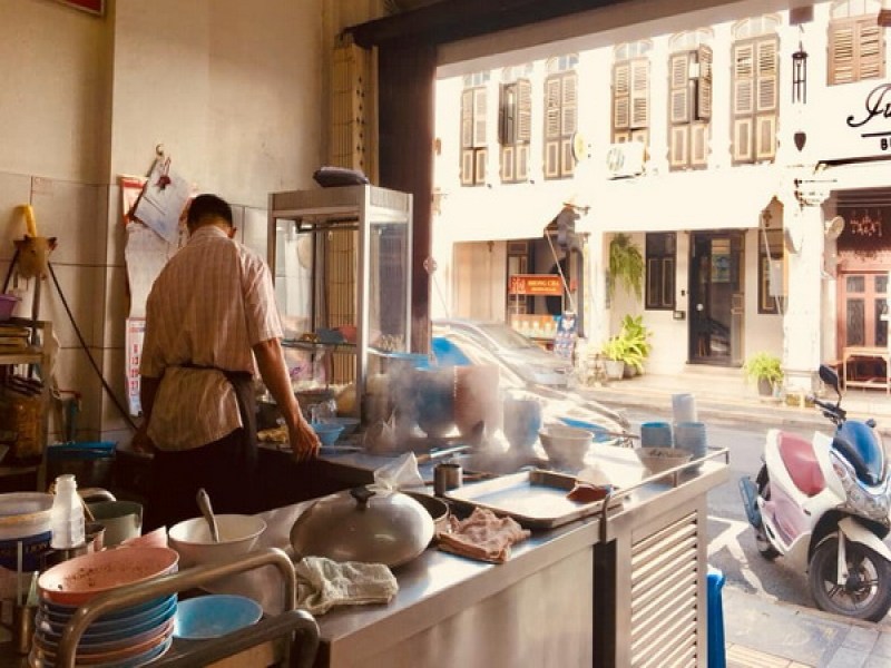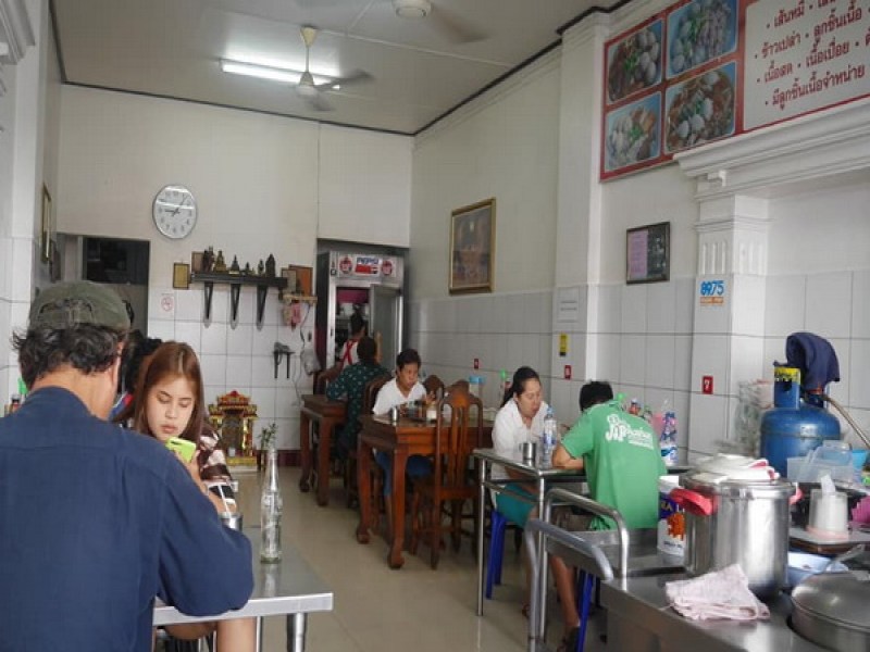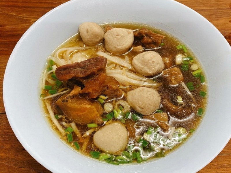 The small, shophouse O Cha Rot Restaurant is famed for it's homemade beef ball broth soups The soup is seasoned with herbs, noodles and bean sprouts. O Cha Rot is a 2020 Michelin Plate Award restaurant. It is located in Old Phuket Town on Yaowarat Rd, set between Thalang Rd and Dibuk Rd.