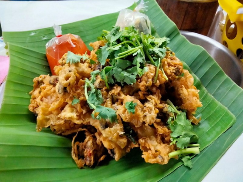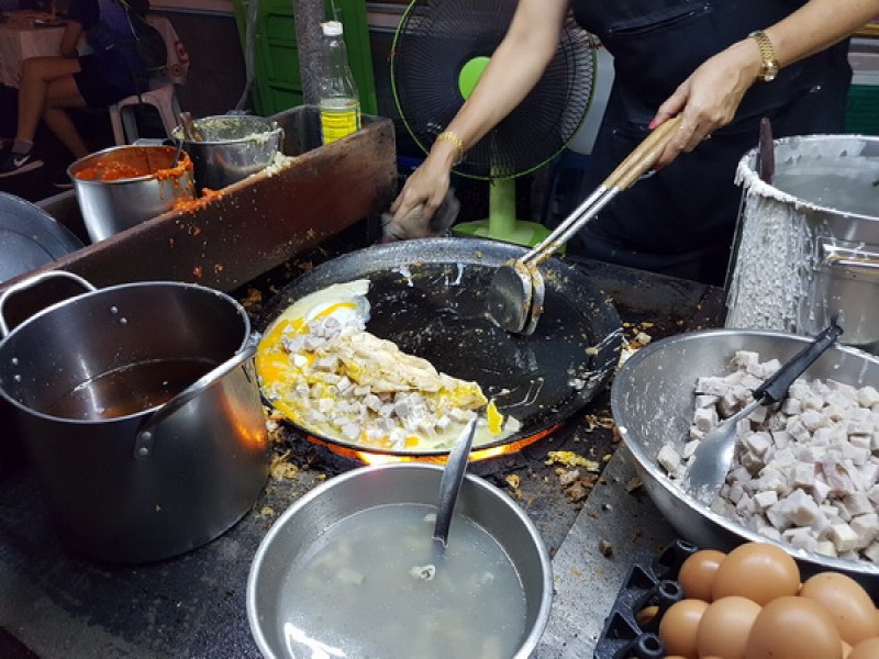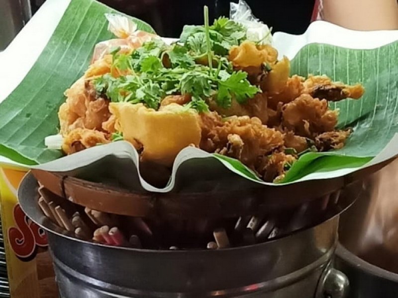 O Tao Bang Niao is a renowned roadside food stall in Phuket Town known for their delicious Yam Oyster Omelettes with a choice of Minced Pork or Seafood, located conveniently near the Phuket Immigration Office.